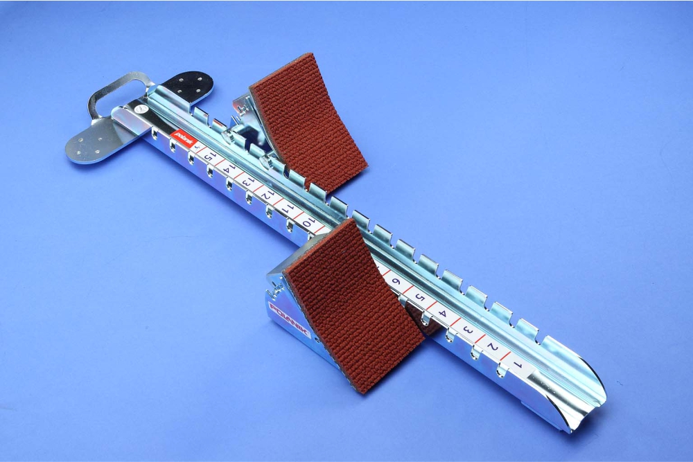 Fabricado com estrutura robusta em aço galvanizado, garante elevada durabilidade e excelente fixação em pista sintética, sendo uma solução fiável tanto para competições oficiais como para treinos de alto rendimento.