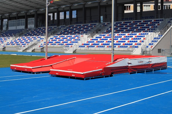 Um sistema especial de almofadas na zona da caixa de encaixe da vara proporciona proteção adicional e permite que a vara de salto se dobre livremente sem entrar em contacto com a área de aterrissagem. Este detalhe técnico aumenta a segurança dos atletas e melhora o desempenho durante o salto.