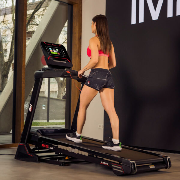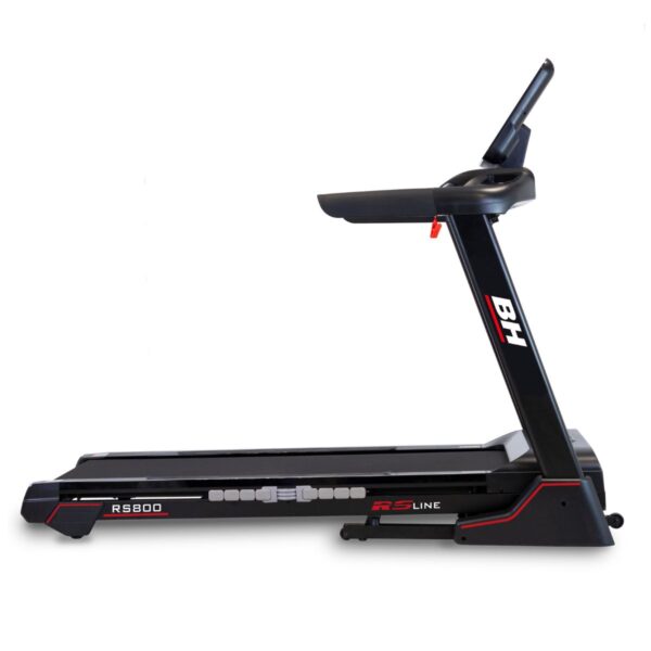 Com uma velocidade máxima de 20 km/h, 12 níveis de inclinação e uma ampla superfície de corrida de 150 x 51 cm, a RS800 adapta-se facilmente a diferentes objetivos de treino, desde caminhadas leves até corridas mais intensas. O seu sistema de amortecimento com 6 elastómeros reduz o impacto nas articulações, proporcionando uma experiência de treino mais confortável e segura.